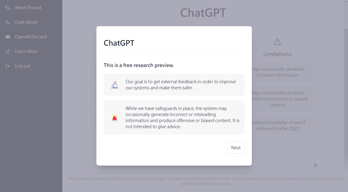另外,虽然OpenAI尽量让ChatGPT能够拒绝不当请求,但是ChatGPT有时候仍会回应有害指令或是出现偏见行为,研究人员以Moderation API来警告或阻挡特定类型的不安全内容,但是预期会有部分遗漏,他们会收集用户回馈,并且改进该系统。