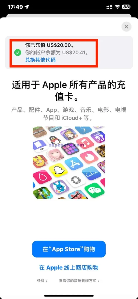 登录美区Apple ID 给余额充值